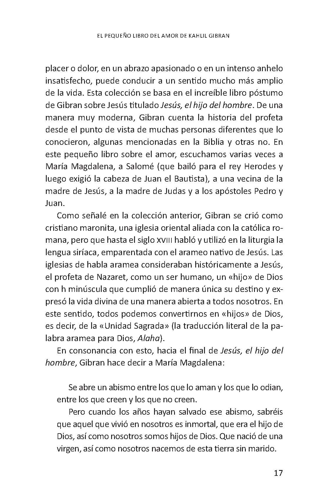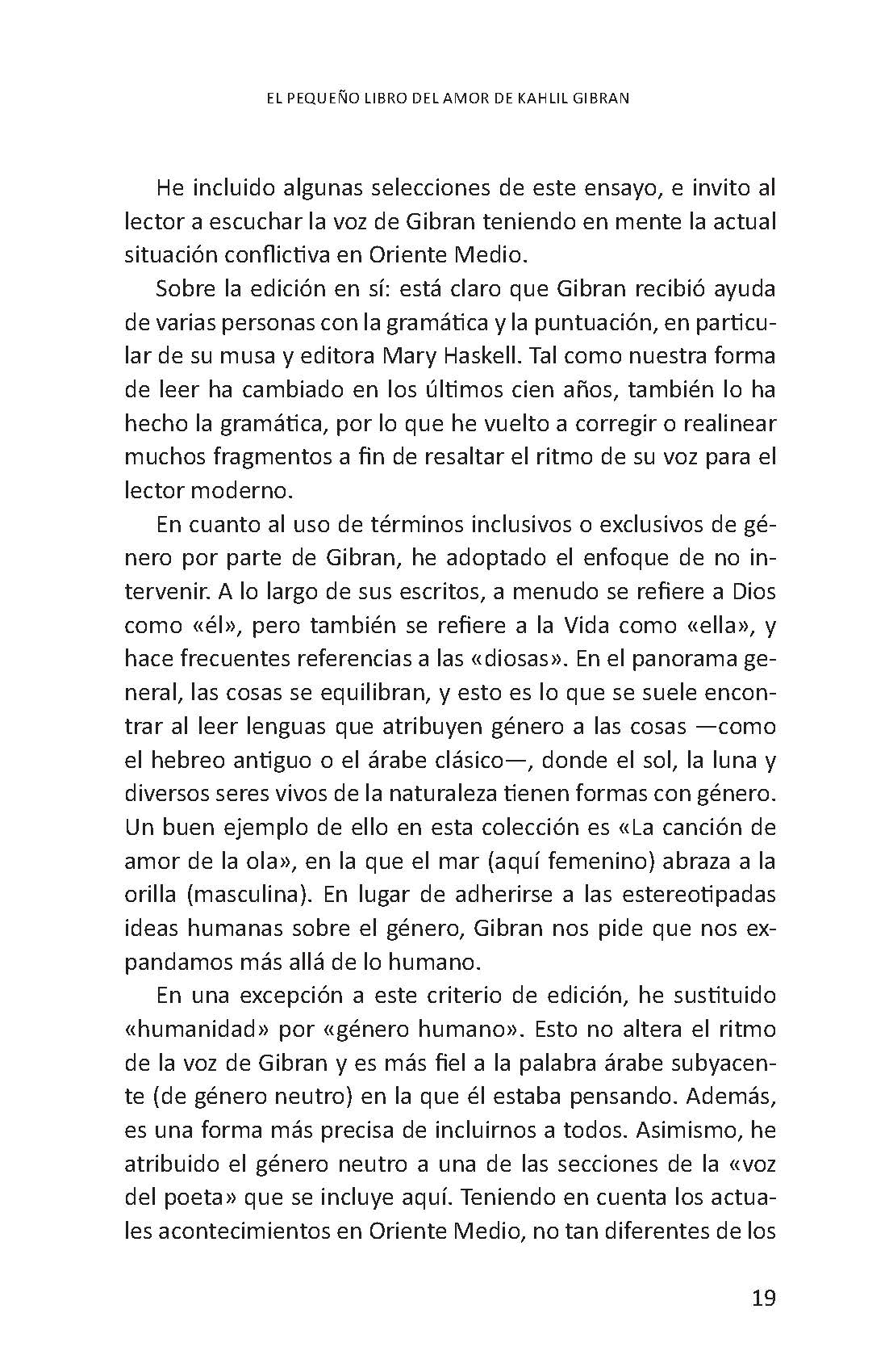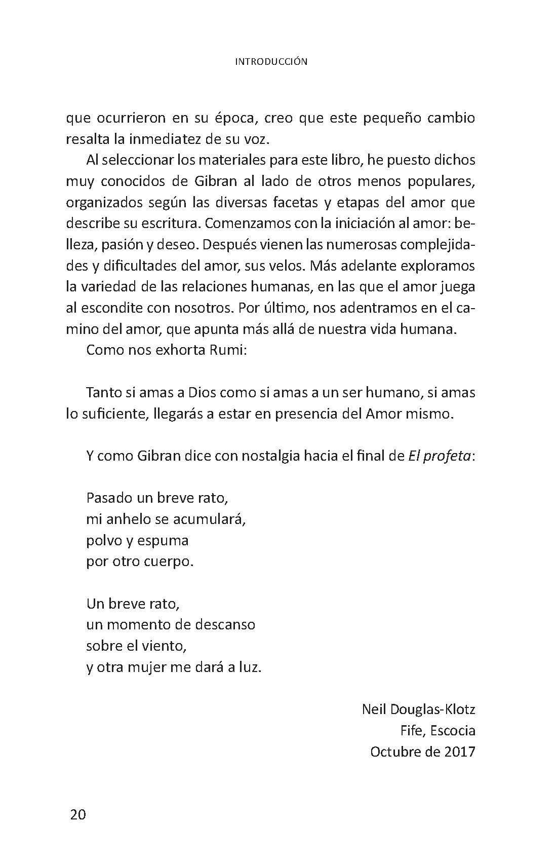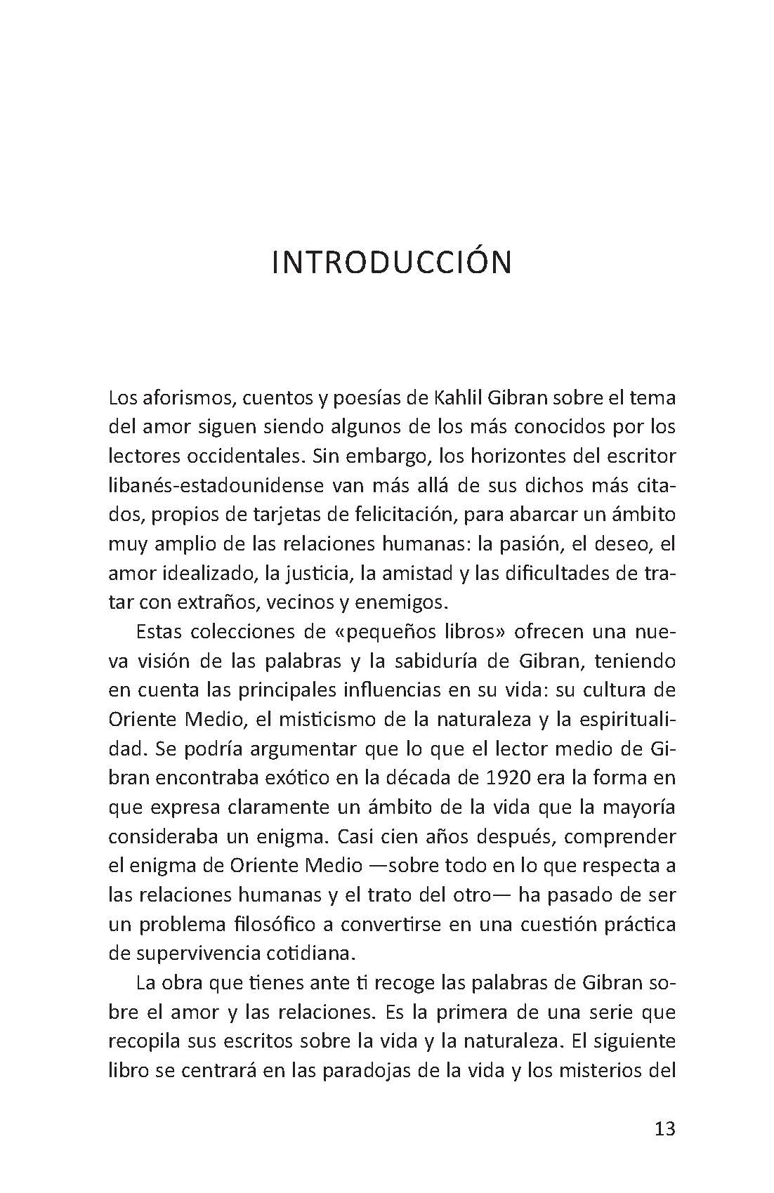 Kahlil Gibran, uno de los poetas más conocidos entre los lectores occidentales, capta, en esta cuidadosa selección de textos, el amor y la vida con todas sus complejidades y matices. A través de cuatro partes, el libro indaga en las relaciones, la sutileza de los sentimientos y lo que reside más allá del amor.